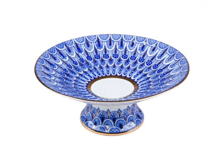Victorian Çift Sargı Mavi Nakışlı Beyaz Keten Amerikan Servis